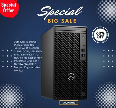 64 MB cache/Intel® Integrated Graphics/DVDRW/No WIFI/Mouse+Keyboard/No Monitor