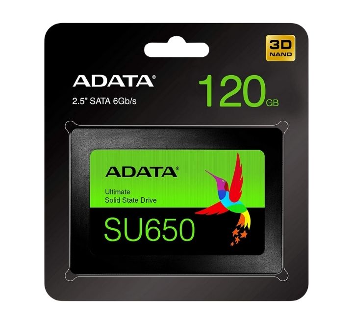 ADATA 120GB SSD (SU630) NAND Flash: 3D QLC Interface: SATA 6Gb/s (SATA III) Form Factor: 2.5” Shock Resistance: 1500G/0.5ms MTBF: 1,500,000 hours 2-Year ADATA Official Warranty